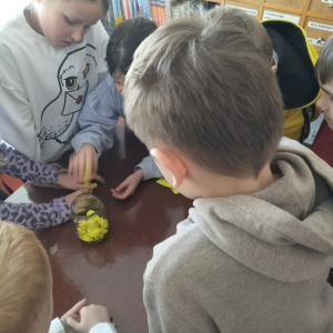 Finałowym zadaniem była gra, polegająca na odnalezieniu ukrytych w bibliotece słoików z „małym co nieco”. Dzieci podążały za wskazówkami, co wywołało mnóstwo entuzjazmu i pozwoliło poczuć się jak prawdziwi odkrywcy.