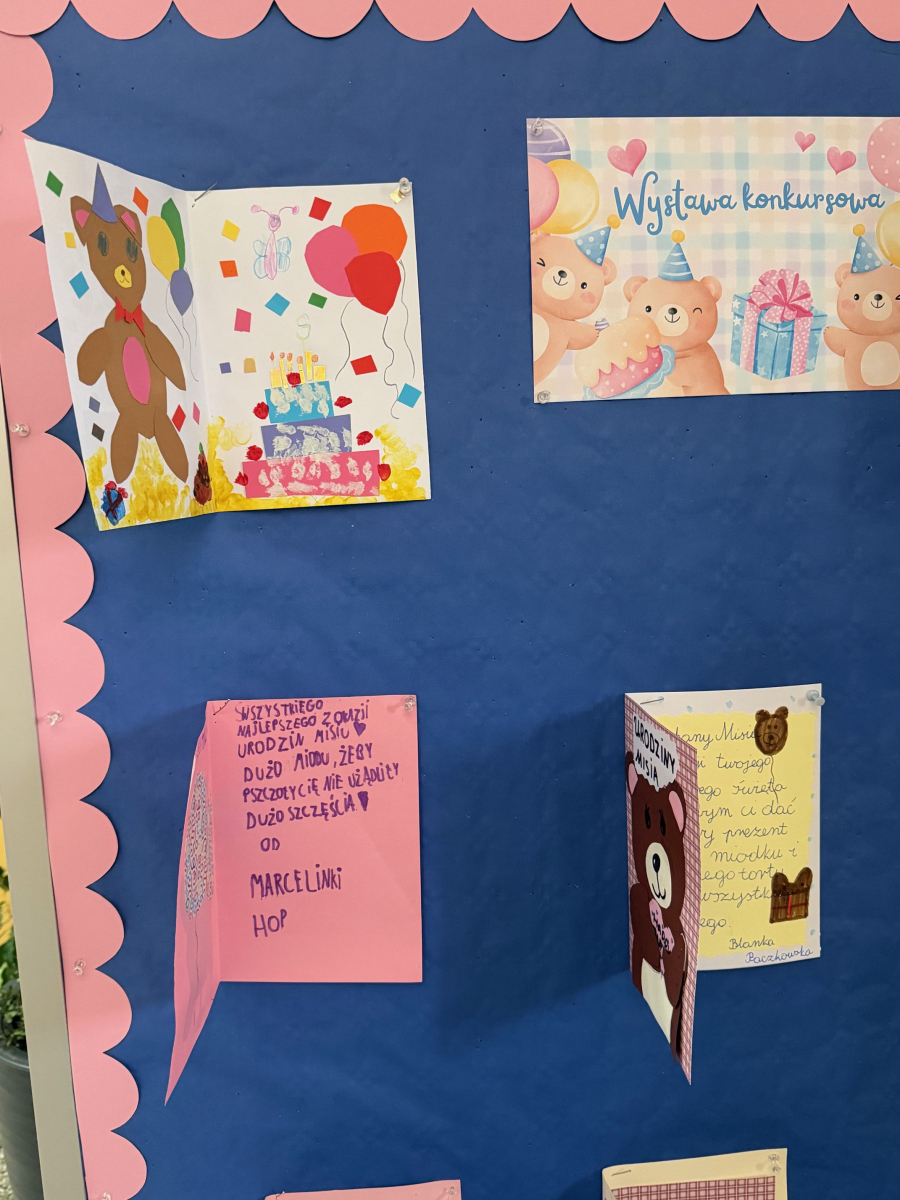 Podczas obchodów Dnia Pluszowego Misia w naszym przedszkolu rozstrzygnięto konkurs plastyczny „Kartka urodzinowa dla Misia”. Dzieci przygotowały niezwykle pomysłowe i kolorowe prace, wykazując się ogromną kreatywnością i starannością.