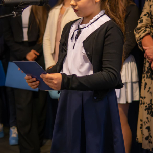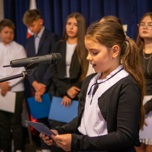 Fraszki Jana Kochanowskiego odczytali uczniowie i nauczyciele z terenu Gminy Hyżne, a naszą szkołę reprezentowała Emilia Inglot, uczennica klasy trzeciej oraz pani Magdalena Kiełb-Sieńko. Wśród zaproszonych gości, a zarazem lektorów prezentujących treny i pieśni Jana Kochanowskiego, znaleźli się przedstawiciele m.in. Rady Gminy Hyżne, Klubu Seniora, Biblioteki Publicznej w Hyżnem, Wójt Gminy Hyżne pan Bartłomiej Kuchta oraz pani Ewa Leniart – Poseł na Sejm RP.