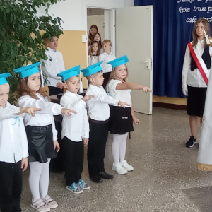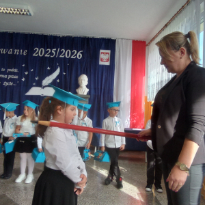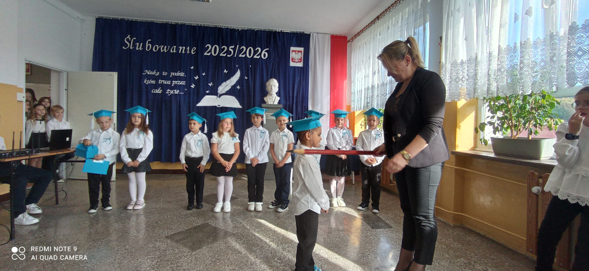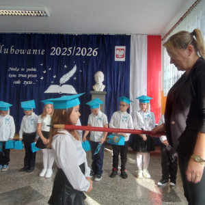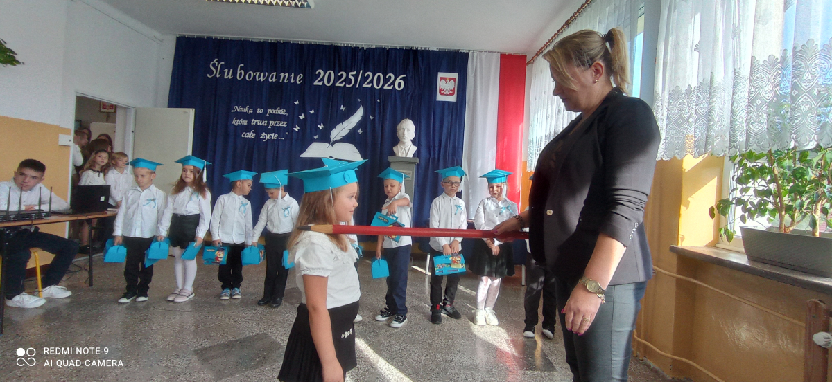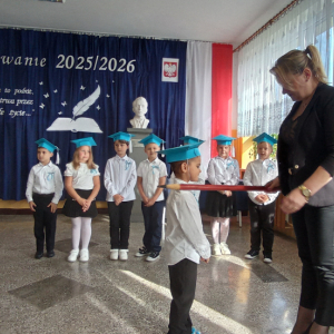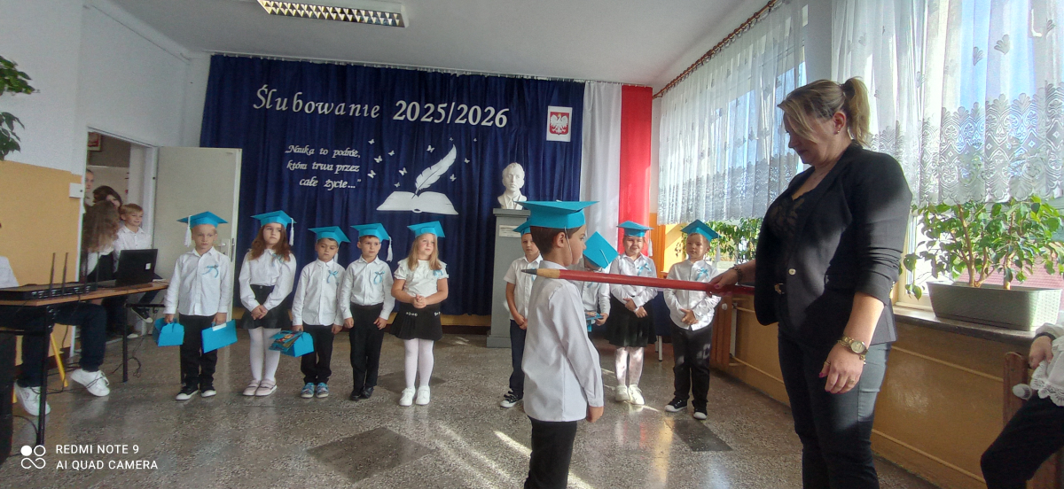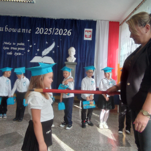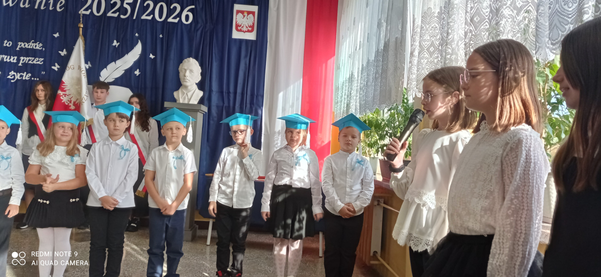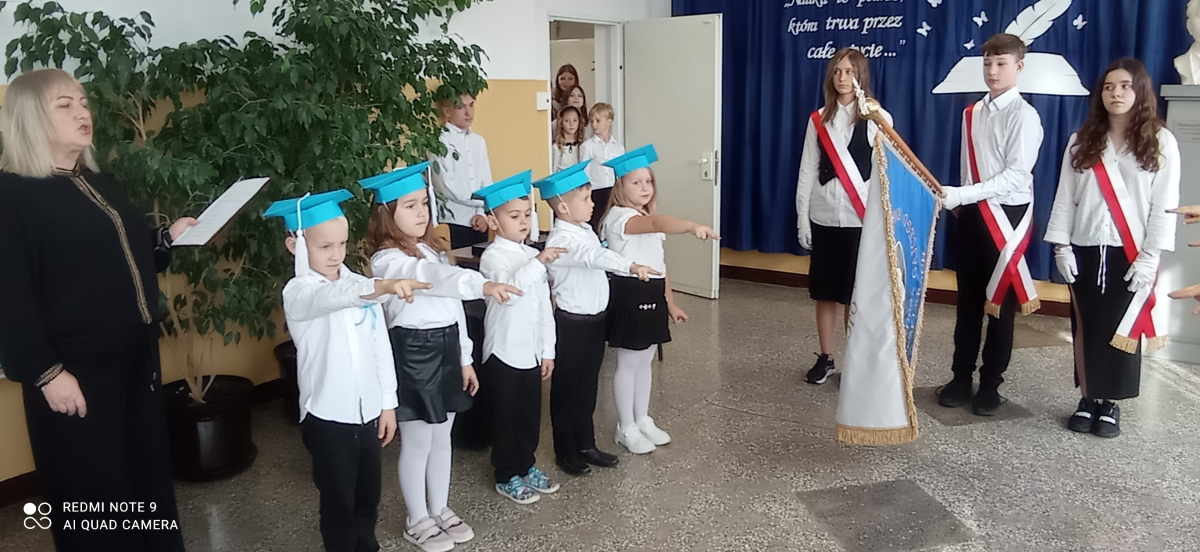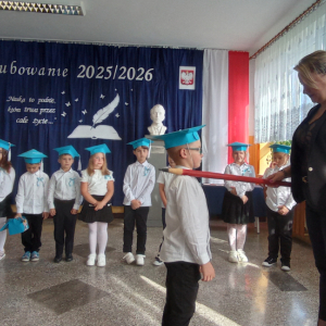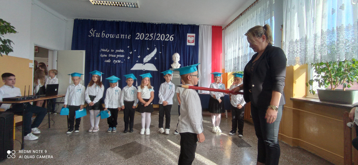 Najważniejszym momentem uroczystości był akt ślubowania oraz symboliczne pasowanie ołówkiem, którego dokonała pani dyrektor. Od tej chwili nasi pierwszoklasiści stali się pełnoprawnymi członkami społeczności szkolnej.