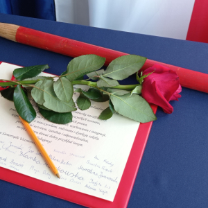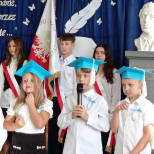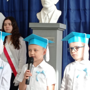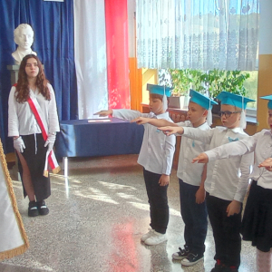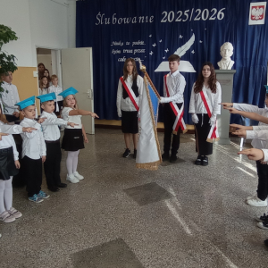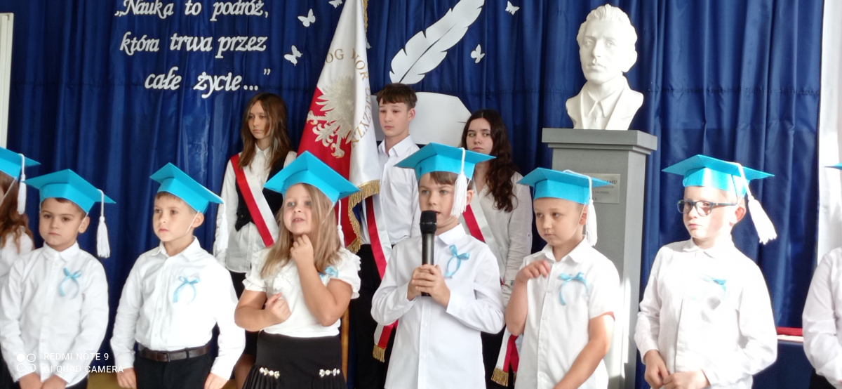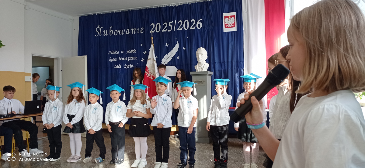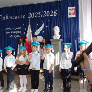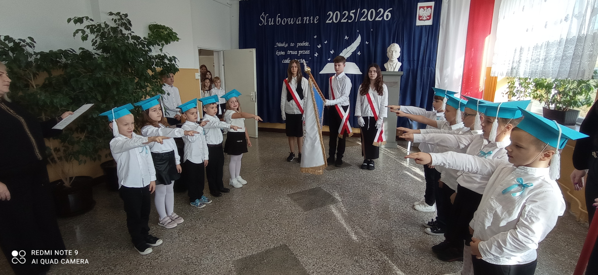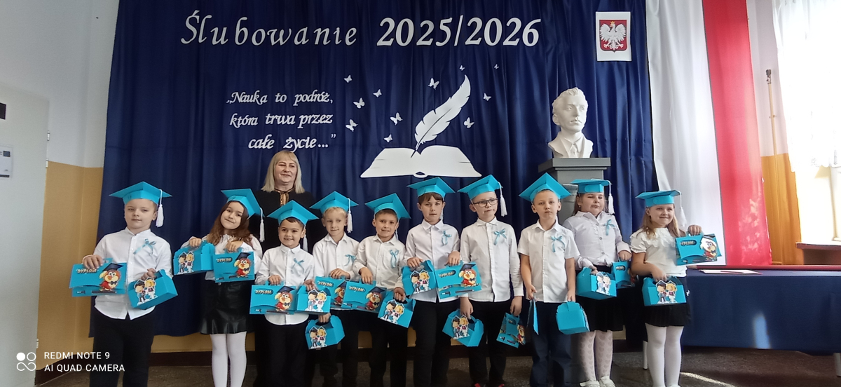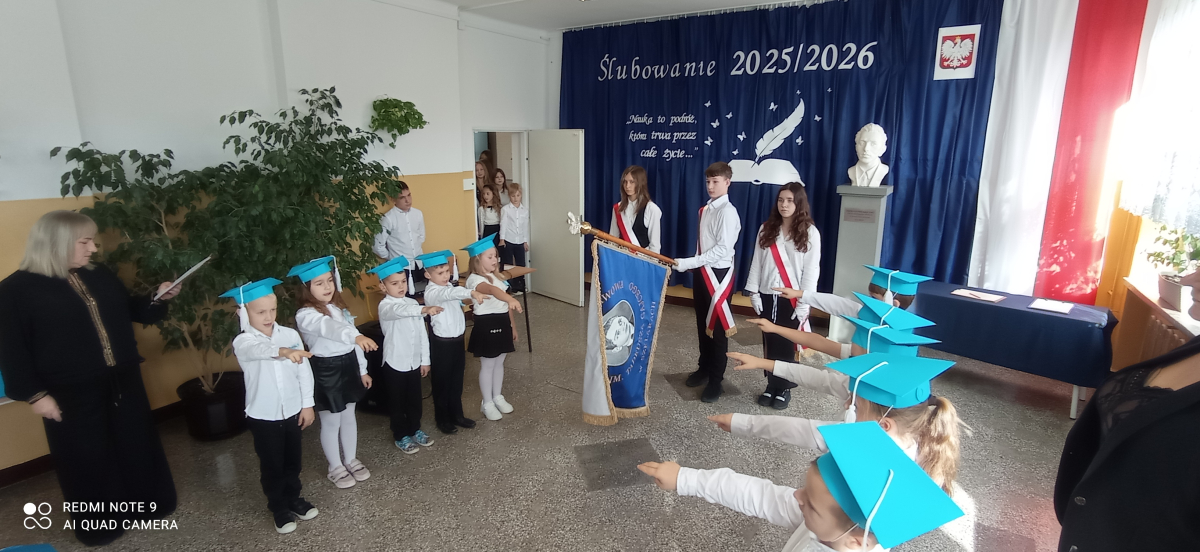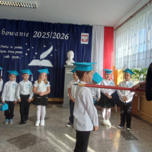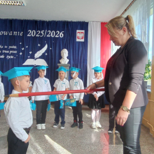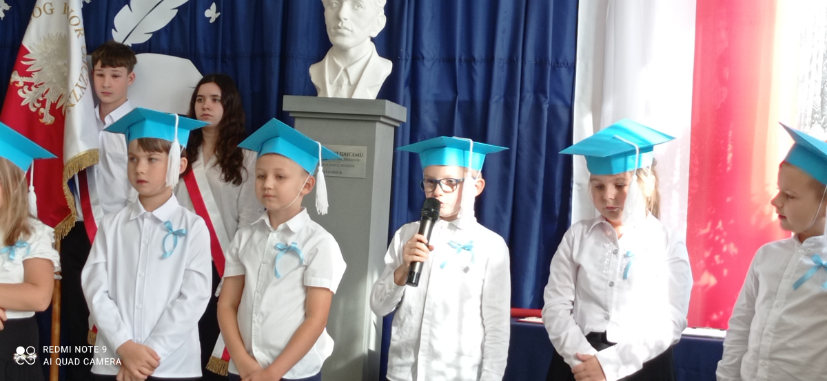 Najważniejszym momentem uroczystości był akt ślubowania oraz symboliczne pasowanie ołówkiem, którego dokonała pani dyrektor. Od tej chwili nasi pierwszoklasiści stali się pełnoprawnymi członkami społeczności szkolnej.