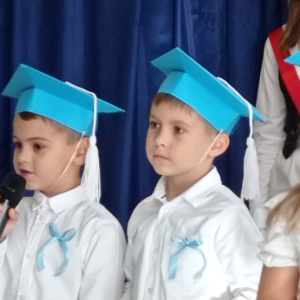 Bohaterowie dnia zaprezentowali program artystyczny – recytowali wiersze, śpiewali piosenki z ruchem i odpowiadali na pytania, udowadniając, że są gotowi zostać prawdziwymi uczniami.