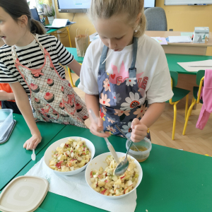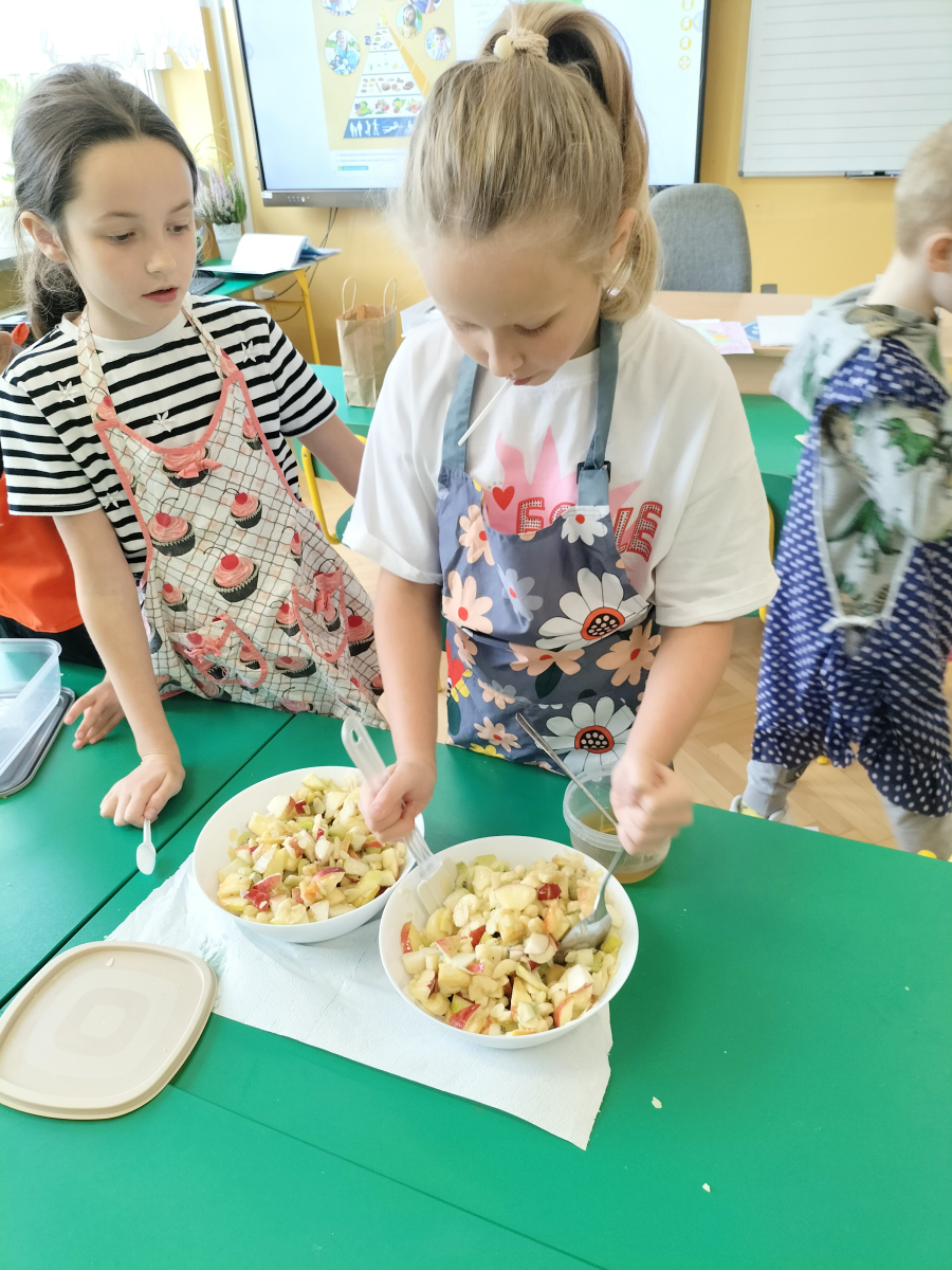 Aparat posłużył uczniom do fotografowania i nagrywania kolejnych etapów przygotowania sałatki, pozwolił wręcz na stworzenie wizualnej instrukcji.
